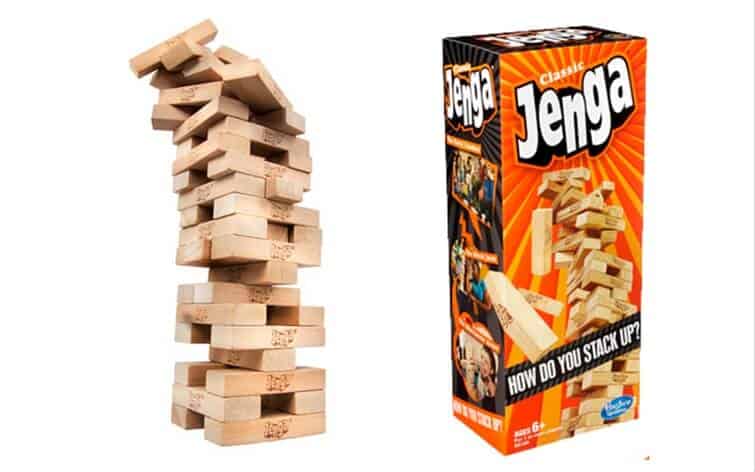 Als je graag Jenga speelt met je kinderen hebben we hier een goed idee voor een ietwat andere invalshoek. Nummer de houten blokken van Jenga van 1 tot 48. Schrijf de nummers op de lange kant van de blokjes en stapel ze zo dat je ze niet ziet.