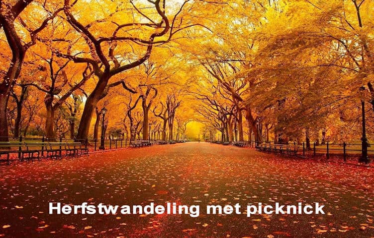 De opdracht voor deze week is om een park of plek op te zoeken waar de herfst zich op zijn mooist laat zien. Geniet van de diversiteit aan kleuren van de bladeren. Ga voor een stevige herfstwandeling en neem een thermosfles met iets warms en een dekentje mee, wie weet vinden jullie een mooi plekje om van elkaar te genieten.