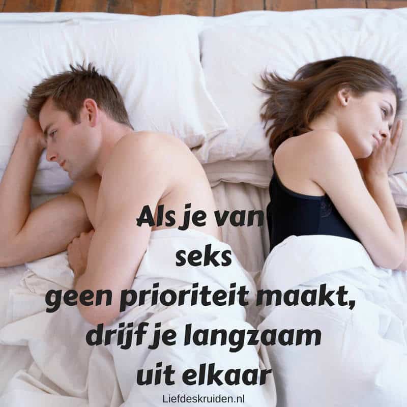 Je opdracht deze week is om na te denken welke dingen jullie helpen om van seks een prioriteit te maken. Zorg dat deze omstandigheden er zijn. Moet er misschien een slot op de slaapkamerdeur? Een schone, opgeruimde slaapkamer? Een paar sexy appjes voor je liefste gedurende de dag? Er leuk en aantrekkelijk uitzien? De tv en mobiel een avondje uit misschien? Aandacht voor elkaar als je samen bent? Wat het ook is dat jullie helpt om op elkaar gefocust te zijn zorg dat er is of komt. Reken maar dat het jullie seks en huwelijksleven zeker ten goede komen. Dus ga op zoek naar opwinding en intimiteit.