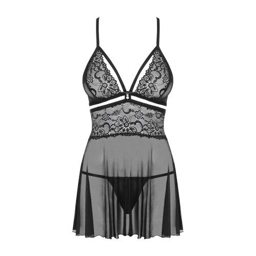 Deze babydoll-set Rosa is gemaakt van een doorzichtige stof met kanten details met dunne bandjes. Het heeft daarnaast een mooie rok en een bijpassende string. Dit babydoll setje is comfortabel te dragen en maakt het spannend voor zowel jezelf als jouw geliefde.