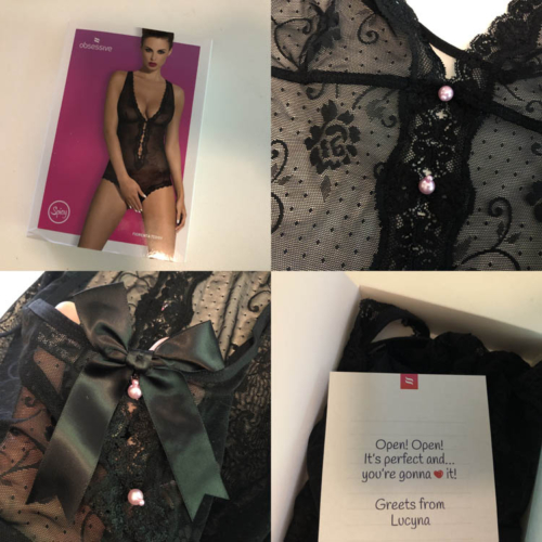 Obsessive maakt hele prachtige dingen, het is gewoon een heel mooi, luxueus lingeriemerk met gewone sexy lingerie. Zo ook deze Fiorenta Body. De bodystocking zit meteen goed. Hij past perfect en staat ook perfect, je voelt je hier helemaal lekker in! Sexy! De hele snit, met het laag uitgesneden decolleté dat doorloopt richting buik, de brede rand van kant langs de randen, de lage ‘pijpjes’ van het ‘broekje’; het past heel goed bij je vormen.