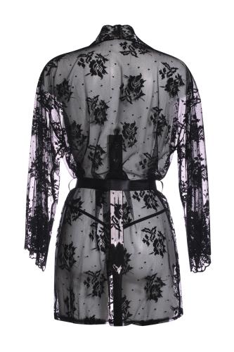 Verleid jouw geliefde met deze mooie kanten kimono Graceful! Prachtige kimono gemaakt van zeer luxe en delicaat kant. Golvende randjes aan de mouwen en langs de voorkant maken dit artikel zo uniek. Met deze kimono kan je eindeloos combineren. Draag hem samen met je favoriete lingerie of zonder ! Hoe gewaagd wil jij verleiden….